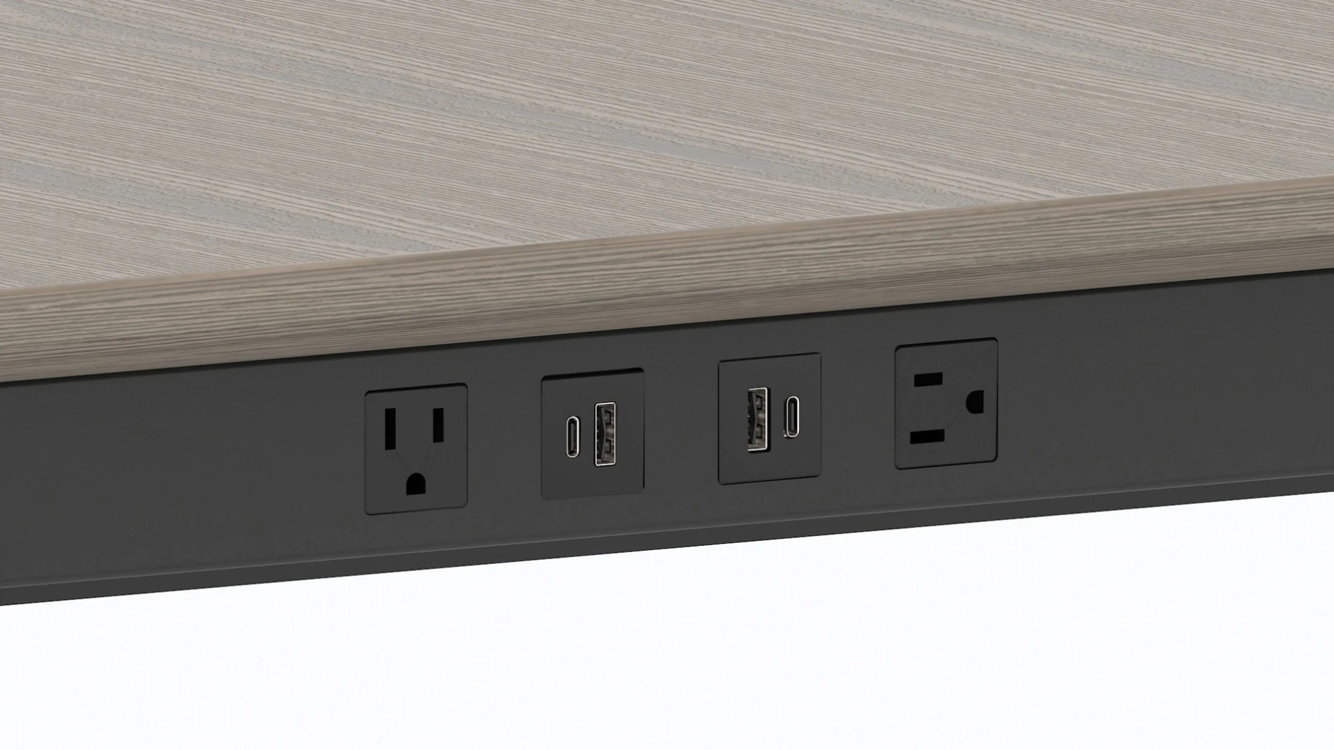 Housed in the metal rail that runs the length of the table, it offers easy access while also allowing the table top to be visually uninterrupted. The location and total quantity of Low Profile Perimeter Power units are predetermined based on table length, making specification easy.